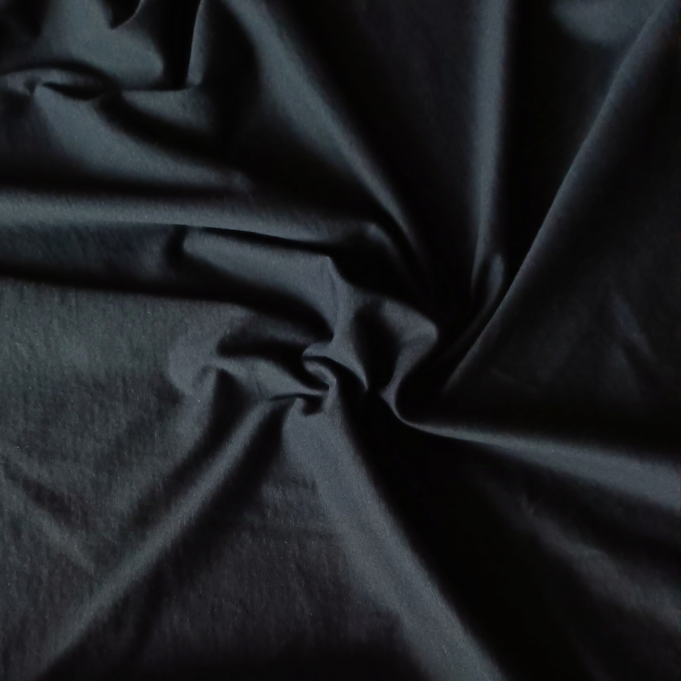 *Вискозный трикотаж средней плотности насыщенного черного цвета. Подойдет для пошива топов, футболок, водолазок, лонгсливов.